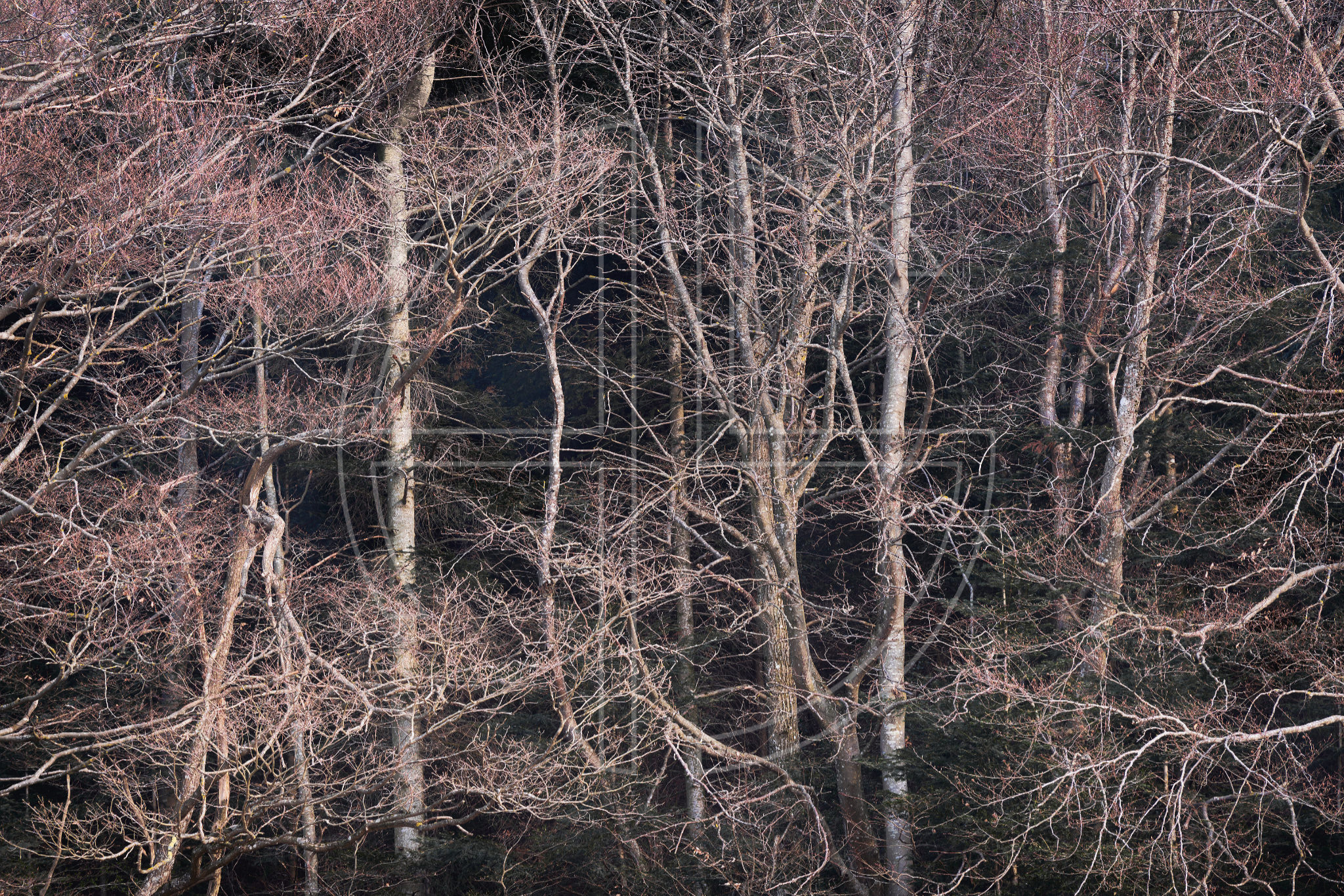 A Fine Art photograph capturing a twilight forest in Hofstetten-Flüh, in the Dorneck District of the Canton of Solothurn, Switzerland. European beech trees stand in the skeletal bareness of early spring in April. Red buds mark their branches. This artwork comes in high-quality print on Canson Arches Aquarelle Rag or Aluminium Dibond, in sizes from 30×20 cm to 120×80 cm. Ideal as nature-inspired wall art for interior or gallery rooms.